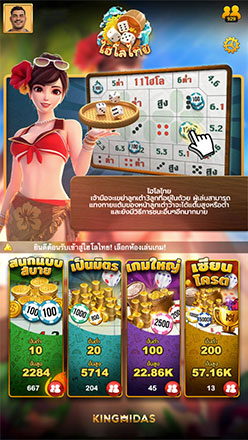 - หลากหลายประเภทเกมให้เลือก ไม่ว่าจะเป็น ไฮโล 3 มิติ, น้ำเต้าปูปลา, บาคาร่า, สล็อต หรือเกมโต๊ะอื่น ๆ ก็สามารถหาเล่นได้ภายใต้แบรนด์ KingMidas